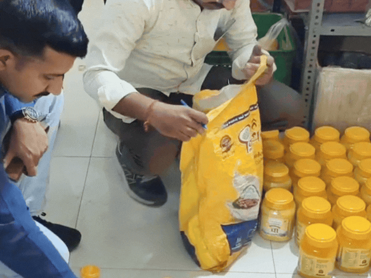 દરોડા દરમિયાન પોલીસે સ્થળ પરથી ૩૨ વર્ષીય નિહાર ભરત મોવલીયાને ઝડપીને ૩.૫૦ લાખની કિંમતનું ૫૮૩ કિલો નકલી ઘી, ૨૨૦૦ નંગ ખાલી-ભરેલા ડબ્બા, સોયાબીન તેલ અને ડાલડાના ડબ્બા, સીલિંગ મશીન, વજન કાંટો, થર્માેમીટર અને ગેસ સિલિન્ડર સહિત કુલ પાંચ લાખનો મુદ્દામાલ કબજે કર્યાે છે.SS1MS