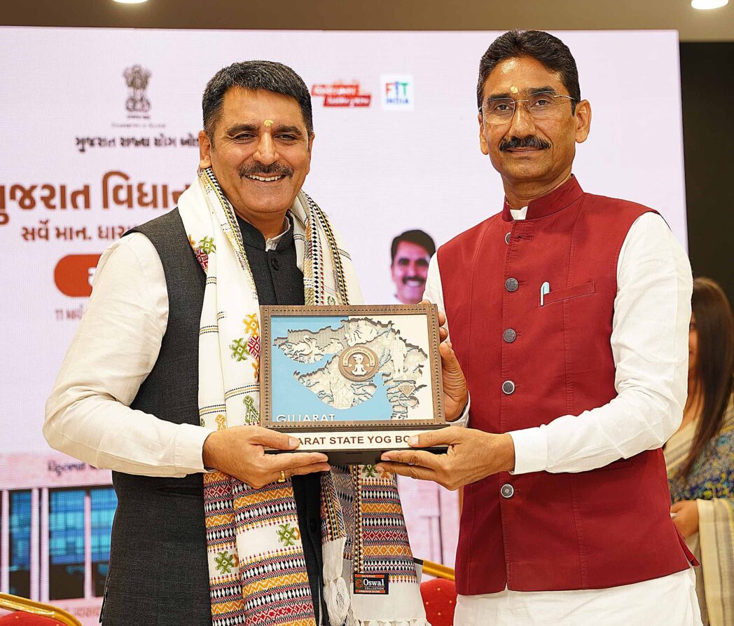 Gandhinagar, ગુજરાત રાજ્ય યોગ બોર્ડ દ્વારા નવાMLAઆવાસ,ગાંધીનગર ખાતે રાજ્યના ધારાસભ્યશ્રીઓ માટે વિધાનસભા અધ્યક્ષ શ્રી શંકરભાઈ ચૌધરીની વિશેષ ઉપસ્થિતિમાં એક વિશેષ યોગ સંવાદ કાર્યક્રમ “એક કદમ યોગમય વિધાનસભા તરફ” નું આયોજન કરવામાં આવ્યું હતું. આ કાર્યક્રમ “સ્વસ્થ ગુજરાત – મેદસ્વીતા મુક્ત ગુજરાત” અભિયાનના એક મહત્વપૂર્ણ ભાગરૂપે યોજાયો હતો,જેનો મુખ્ય હેતુ‘વિકસિત ગુજરાત,વિકસિત ભારત‘ના વિઝનને સાકાર કરવા માટે લોકપ્રતિનિધિઓના માધ્યમથી યોગને જન-આંદોલન બનાવવાનો છે.