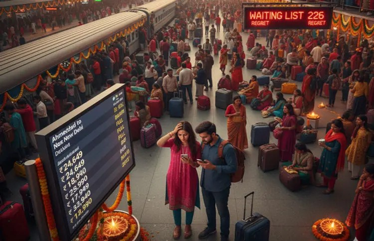 આગામી 18 ઓક્ટોબરથી દિવાળીના તહેવારોનો પ્રારંભ થશે અને તેને લઇને જુલાઇથી જ બૂકિંગનો ધસારો શરૂ થઇ ગયો હતો. અમદાવાદ-દિલ્હીનું વન-વે એરફેર સામાન્ય દિવસોમાં રૂપિયા 4500ની આસપાસ હોય છે પણ 18 ઓક્ટોબરના લઘુતમ એરફેર રૂપિયા 11300-મહત્તમ એરફેર રૂપિયા 24649 છે. ફ્લાઇટના ઊંચા ભાડા જોઇને ટ્રેનમાં જવાનું વિચારી રહ્યા હોવ તો ત્યાં પણ સ્થિતિ વિકટ જ છે. ટ્રેનમાં આશ્રમ એક્સપ્રેસ, રાજધાની એક્સપ્રેસમાં ‘રિગ્રેટ’ આવી ગયું છે, જ્યારે રાજધાનીમાં 225નું વેઇટિંગ છે.