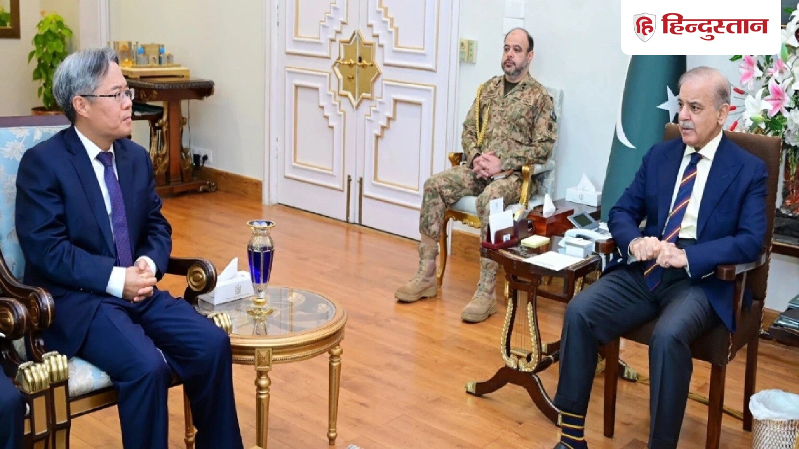 પાકિસ્તાનમાં ચીનના રાજદૂત જિયાંગ ઝેડોંગ આજે (ગુરુવાર, 23 એપ્રિલ) વડા પ્રધાન શહેબાઝ શરીફને મળ્યા હતા અને પશ્ચિમ એશિયાની સ્થિતિ અને યુએસ-ઈરાન યુદ્ધને સમાપ્ત કરવા માટે ઈસ્લામાબાદના શાંતિ પ્રયાસો અંગે ચર્ચા કરી હતી. રાજદૂત જિયાંગે વડા પ્રધાન શહેબાઝ શરીફ સાથે સૌજન્ય મુલાકાત કરી હતી. આ બેઠકમાં નાયબ વડા પ્રધાન અને વિદેશ પ્રધાન ઇશાક ડાર ઉપરાંત આયોજન, વિકાસ અને વિશેષ પહેલ પ્રધાન અહસાન ઇકબાલ અને માહિતી પ્રધાન અતાઉલ્લાહ તરાર પણ હાજર હતા.