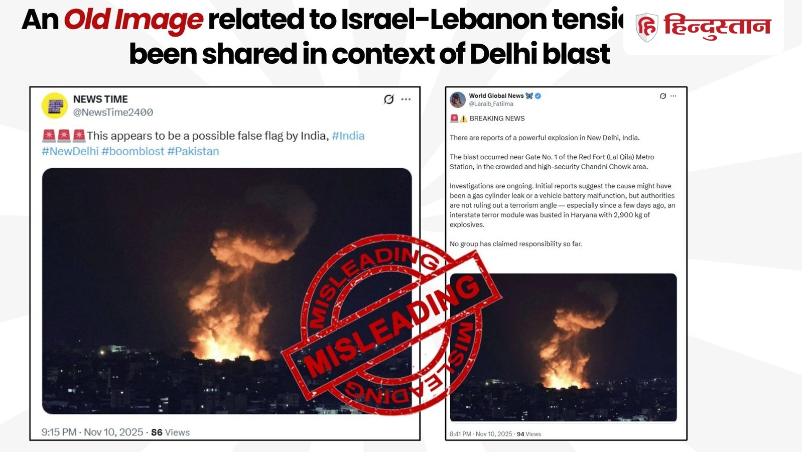 પ્રેસ ઇન્ફોર્મેશન બ્યુરો (PIB)ના ફેક્ટ ચેક યુનિટે આ દાવાને સંપૂર્ણપણે ફગાવી દીધો છે. પીઆઈબી ફેક્ટ ચેકે સ્પષ્ટતા કરી છે કે વાયરલ તસવીર દિલ્હીમાં થયેલા કોઈ બ્લાસ્ટ સાથે સંબંધિત નથી, પરંતુ તે 2024માં લેબનોનના બેરૂતમાં ઈઝરાયેલની એર સ્ટ્રાઈકની છે. આ ફોટોનો મૂળ સ્ત્રોત mtv.com.lb છે, જેમાં સ્પષ્ટપણે લખ્યું છે કે આ બેરુતના દહિયાહ વિસ્તારમાં થયેલા હુમલાનો ફોટો છે. PIBએ આવા નકલી દાવાઓ ટાળવા અને આગળ શેર કરતા પહેલા સત્તાવાર અને વિશ્વસનીય સ્ત્રોતોમાંથી કોઈપણ માહિતીની ચકાસણી કરવાની ચેતવણી આપી છે.