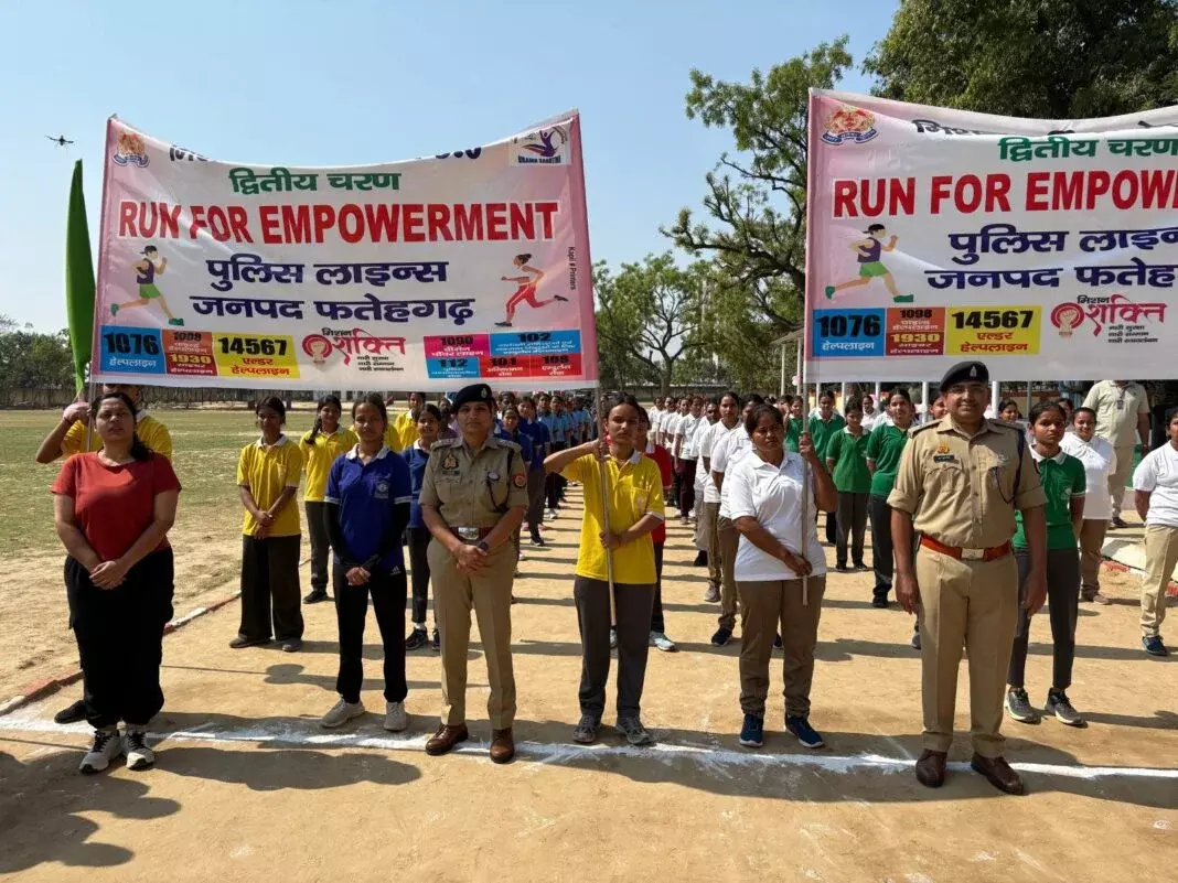 ફરુખાબાદ: પોલીસ લાઇન્સમાં મિશન શક્તિ 5.0 અંતર્ગત એક વિશેષ કાર્યક્રમનું આયોજન કરવામાં આવ્યું હતું, જે મહિલાઓની સુરક્ષા, સન્માન અને આત્મનિર્ભરતાને પ્રોત્સાહન આપવાના ઉદ્દેશ્ય સાથે ચલાવવામાં આવી રહ્યું છે. આ દરમિયાન ‘રન ફોર એમ્પાવરમેન્ટ’ રેસનું આયોજન કરવામાં આવ્યું હતું, જેમાં મોટી સંખ્યામાં યુવતીઓ અને મહિલા પોલીસકર્મીઓએ ઉત્સાહભેર ભાગ લીધો હતો.