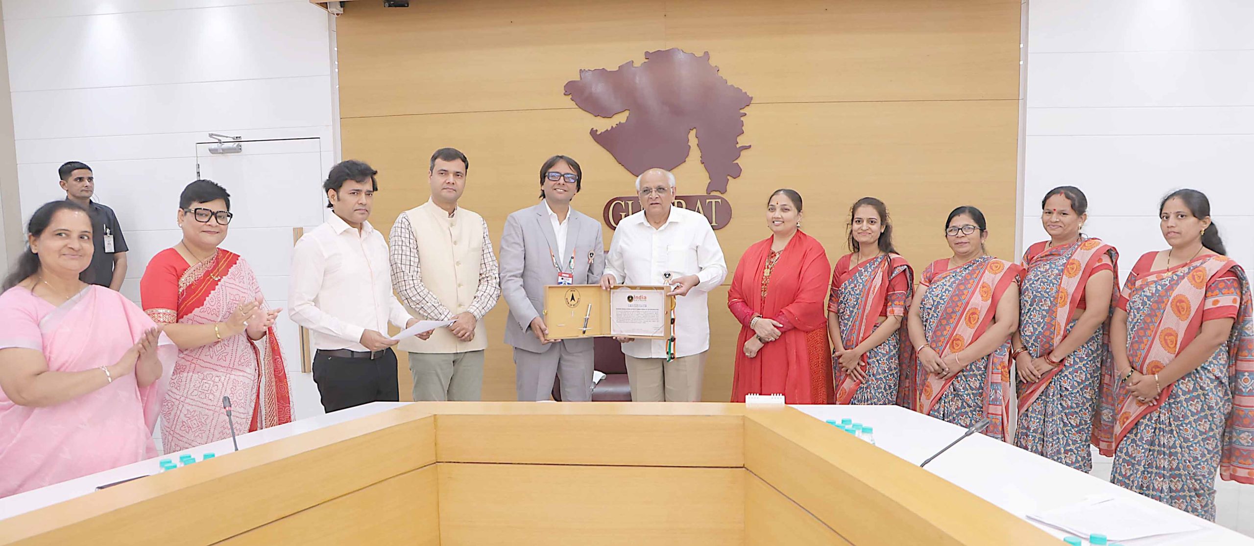 ગુજરાતની આ પહેલને ઈન્ડિયા બૂક ઓફ રેકર્ડમાં સ્થાન મળ્યુ છે તે અંગેનું સર્ટીફિકેટ અને મેડલ ઈન્ડિયા બૂક ઓફ રેકર્ડના પ્રતિનિધિઓએ મુખ્યમંત્રીશ્રી સમક્ષ પ્રસ્તુત કર્યા હતા.