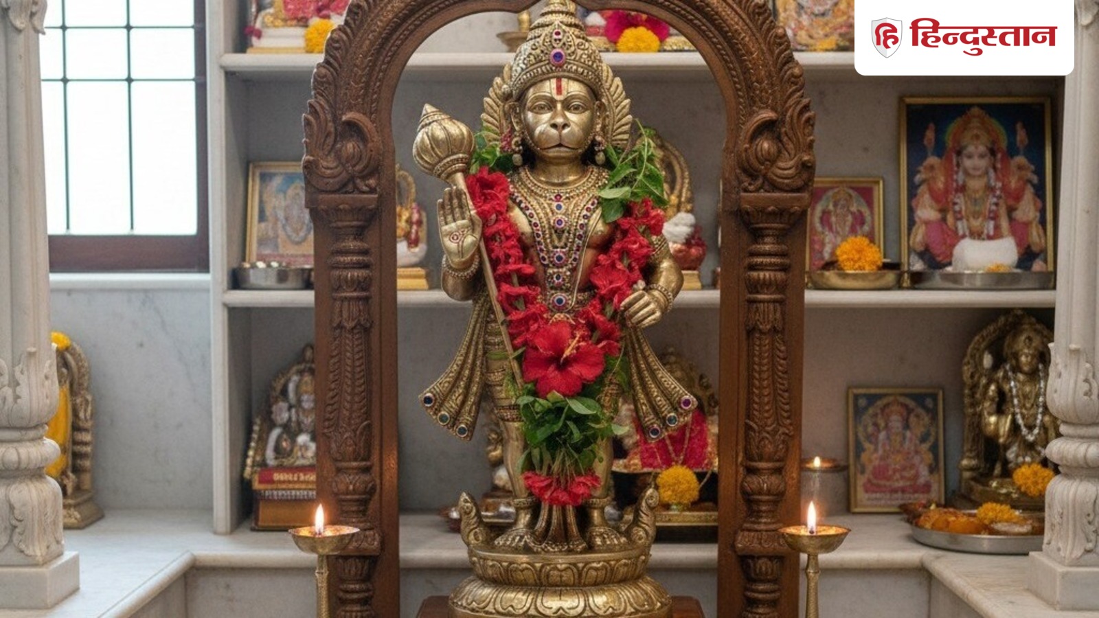 તેના પર ભગવાન રામ અને માતા સીતાની તસવીર સાથે હનુમાનજીની પ્રતિમા અથવા તસવીર સ્થાપિત કરો.