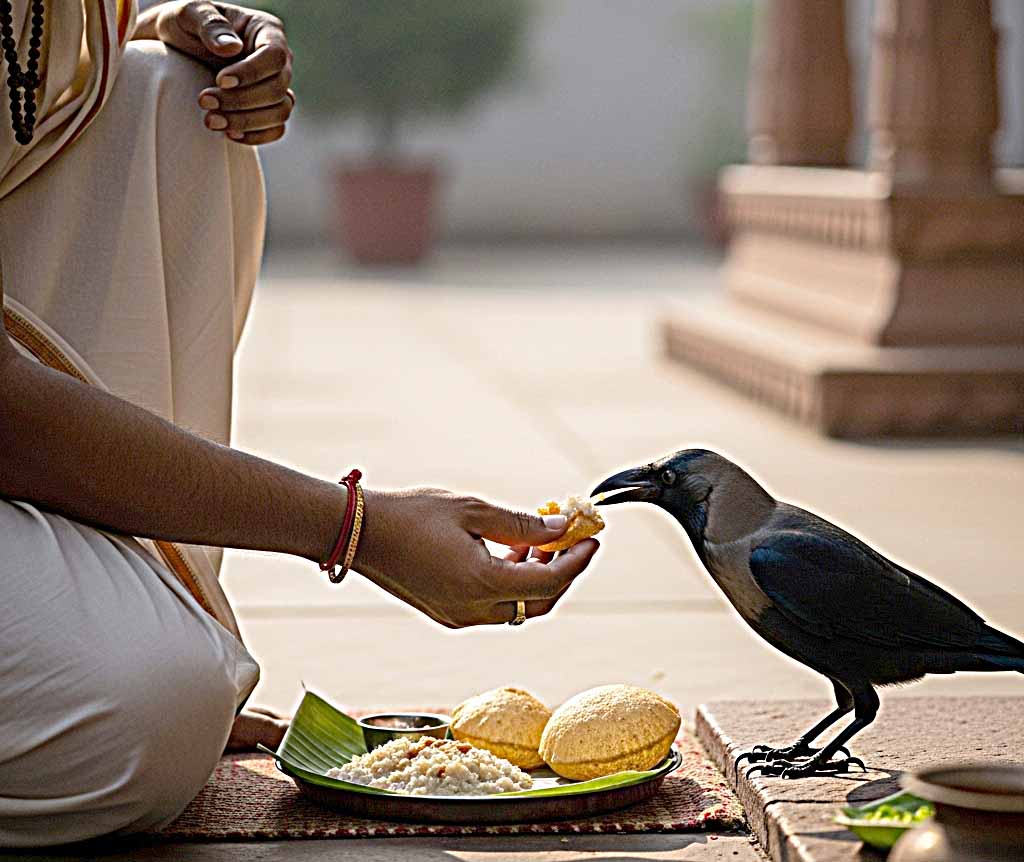 કાગડા આવીને શ્રાધ્ધની ખીર આરોગે એવું સૌ કોઈ ઈચ્છતું હોય છે. પરંતુ કાગડા માણસોનો જલદી વિશ્વાસ કતા નથી પરંતુ સેટેલાઈટ વિસ્તારમાં આર્ષ એપાર્ટમેન્ટમાં રહેતા અર્ચનાબેન નાગોરીની બાલ્કનીમાં કાગડાઓ દરરોજ કા.કા. દકરતા આવી ચડે છે. જયાં સુધી તેમને ખોરાક ના મળે ત્યાં સુધી ખસતા નથી. તેઓ સોળ શ્રાધ્ધના દિવસો જ નહી કાયમ કાગડાને દુધ, રોટલી, અને બ્રેડ ખવડાવે છે. પીવા માટે પાણી પણ મુકે છે.