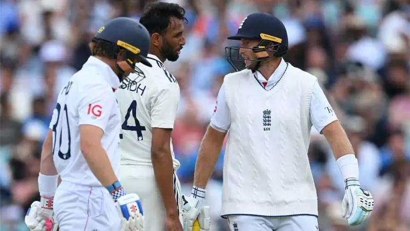તેના આગલા બોલ પર, રુટ, સ્ક્વેર ડ્રાઇવને ફટકારતી વખતે, થોડા શબ્દો પણ બોલ્યા અને અમ્પાયર કુમાર ધર્મસેના સાથે દખલ કરવી પડી અને પ્રખ્યાત સાથે વાત કરી. જ્યારે ધર્મસેના પ્રખ્યાત સાથે વાત કરી રહી હતી, ત્યારે એલ રાહુલ અને શુબમેન ગિલ પણ ત્યાં પહોંચ્યા અને ચર્ચા બે મિનિટથી વધુ સમય સુધી ચાલી. આગામી કેટલીક ઓવર સુધી, ધર્મસેનાએ પ્રખ્યાત પર નજર રાખી હતી અને આ સમય દરમિયાન અન્ય ભારતીય ખેલાડીઓ માર્ગમાં ફસાઇ રહ્યા હતા.