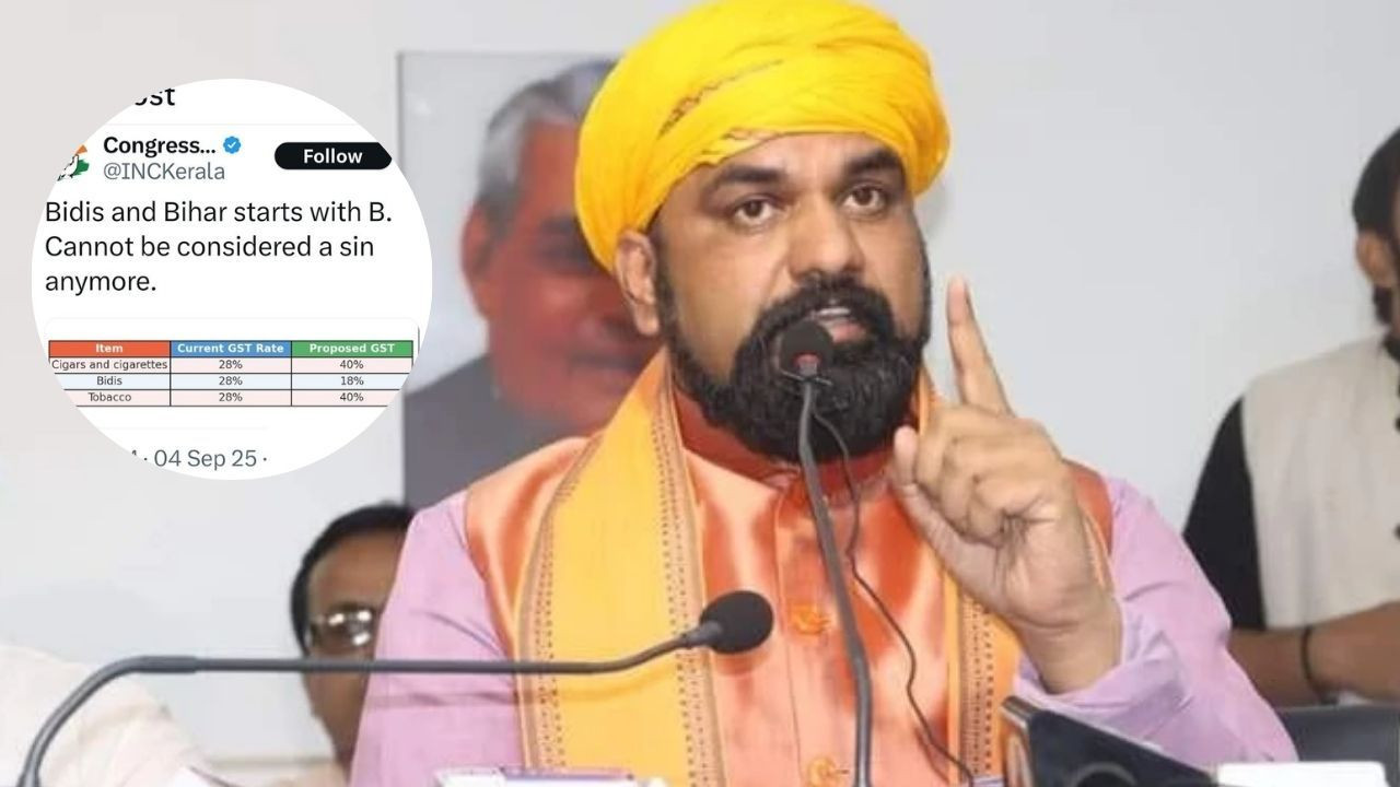 બિહાર વિધાનસભા ચૂંટણી:કોંગ્રેસના કેરળ યુનિટે સોશિયલ મીડિયા પરની એક પોસ્ટ દ્વારા કેન્દ્ર સરકારના જીએસટી સુધારાઓ અંગે ટિપ્પણી કરી હતી, જેણે મોટો વિવાદ .ભો કર્યો હતો. હવે આ બાકાત એક્સ પોસ્ટમાં, કોંગ્રેસે લખ્યું છે કે ‘બીડી અને બિહાર બંને બીથી શરૂ થાય છે’ અને ‘તેઓને હવે પાપ ગણી શકાય નહીં’, જે જીએસટીમાં તમાકુના ઉત્પાદનો પરના કાપનો ઉલ્લેખ કરે છે.