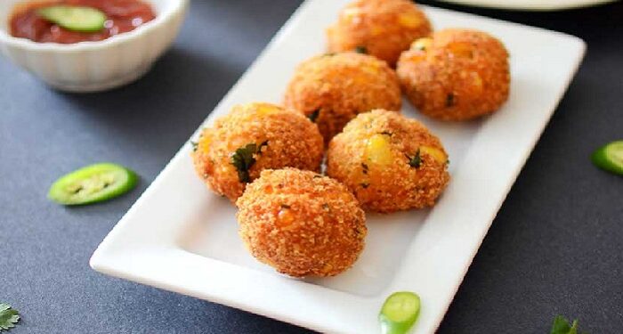 2-3 મધ્યમ કદના બટાકાને બાફી લો અને જ્યારે તે સંપૂર્ણપણે બાફી જાય, ત્યારે તેની છાલ કાઢી લો. હવે આ બટાકાને મેશ કરો અને તેમાં 50 ગ્રામ છીણેલું ચેડર ચીઝ ઉમેરો. થોડું મીઠું અને મરી સાથે સીઝન. આ બોલ્સ બનાવવા માટે તેમાં થોડો રિફાઈન્ડ લોટ ઉમેરો. કણકમાંથી નાના-નાના ગોળા બનાવીને મધ્યમ તાપ પર તેલમાં 2-3 મિનિટ સુધી તળી લો.