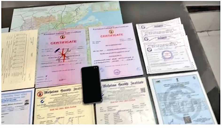 ક્લાસિસમાંથી દિલ્હી બોર્ડ, ગાંધીનગર મહાત્મા ગાંધી વોકેશનલ ઇન્સ્ટિટ્યૂટ, વોકેશનલ ટ્રેનિંગ, સેકેન્ડરી સ્કૂલ એક્ઝામિનેશન સર્ટિફિકેટ, પ્રોવિઝનલ નેશનલ ટ્રેડ સર્ટિફિકેટ, સાયન્સ, આઈ.ટી.આઈ ની વિવિધ માર્કશીટ અને સર્ટિફિકેટ મળી આવ્યા હતા. આરોપી બોગસ સર્ટી બનાવવાના ૧૫ હજાર રૂપિયા લેતો. જે દિલ્હીના કોઈ ભેજાબાજ મુખ્ય સૂત્રધાર બનાવી તેને ઓનલાઇન ¹ ૭૫૦૦ પેમેન્ટ કરતા હતો.