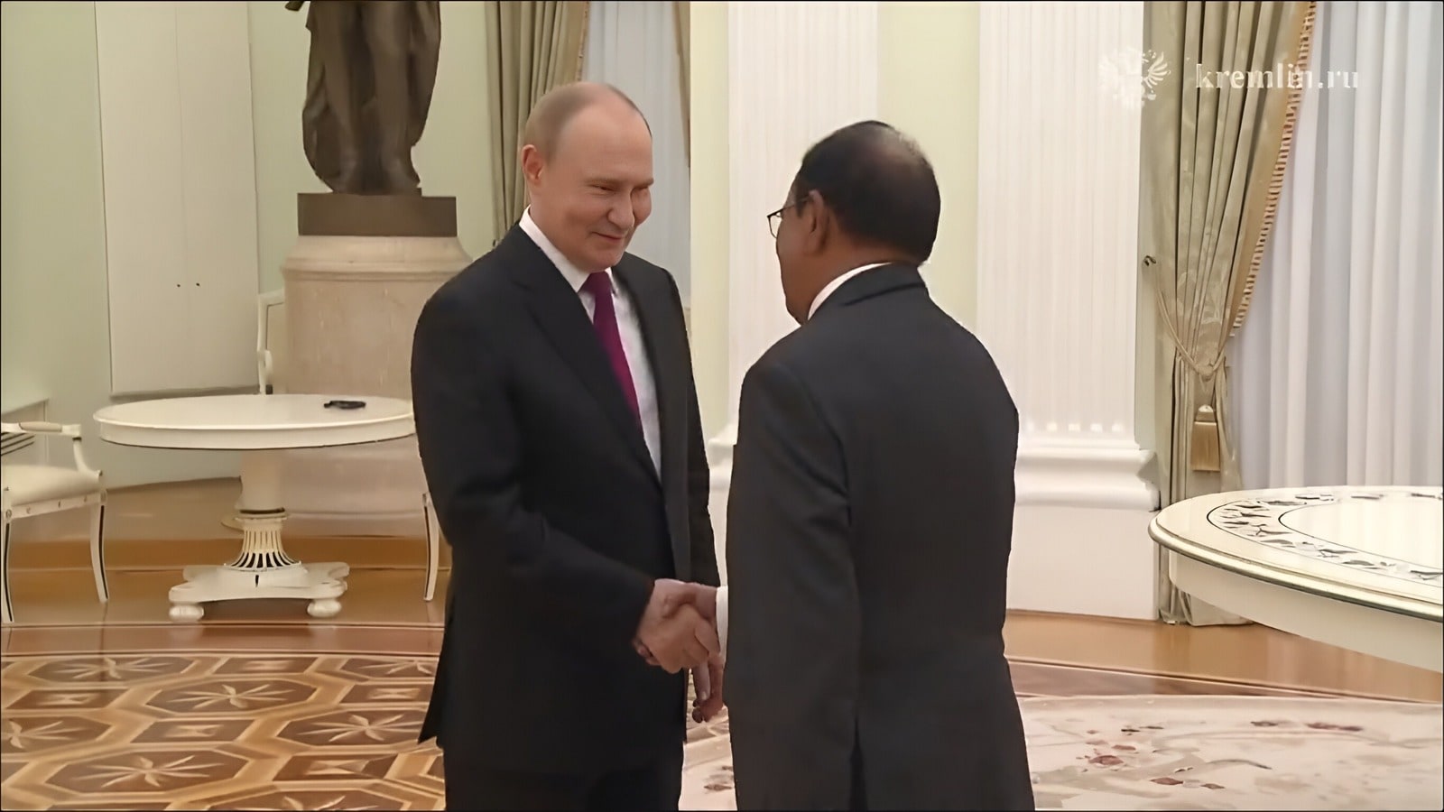 ક્રેમલિન પ્રેસ સર્વિસ દ્વારા શેર કરેલી વિડિઓ ક્લિપમાં, ડોવાલ વાટાઘાટો પહેલાં પુટિન સાથે હાથ મિલાવતો જોવા મળ્યો હતો. દ્વિપક્ષીય energy ર્જા અને સંરક્ષણ સંબંધો પર મહત્વપૂર્ણ વાટાઘાટો કરવા અને આ વર્ષના અંતમાં રાષ્ટ્રપતિ પુટિનની ભારતની મુલાકાત માટે જમીન તૈયાર કરવા બુધવારે ડોવલ અહીં પહોંચ્યો હતો.