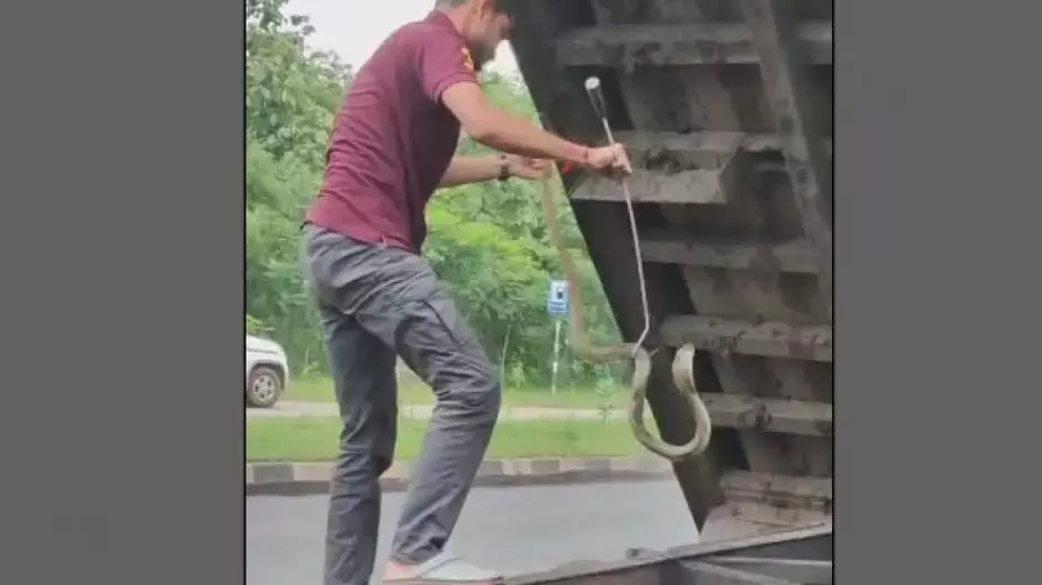 પાછળથી, સ્થાનિક સાપની હેલ્પલાઇનના સભ્યોને જાણ કરવામાં આવી. નિરીક્ષણ પર, બચાવ ટીમે શોધી કા .્યું કે સાપ સંભવત: કમકમાટી ગયો હતો અને ડમ્પરના ચેસિસ વિસ્તારમાં ફસાઇ ગયો હતો અને બહાર નીકળી શક્યો ન હતો.