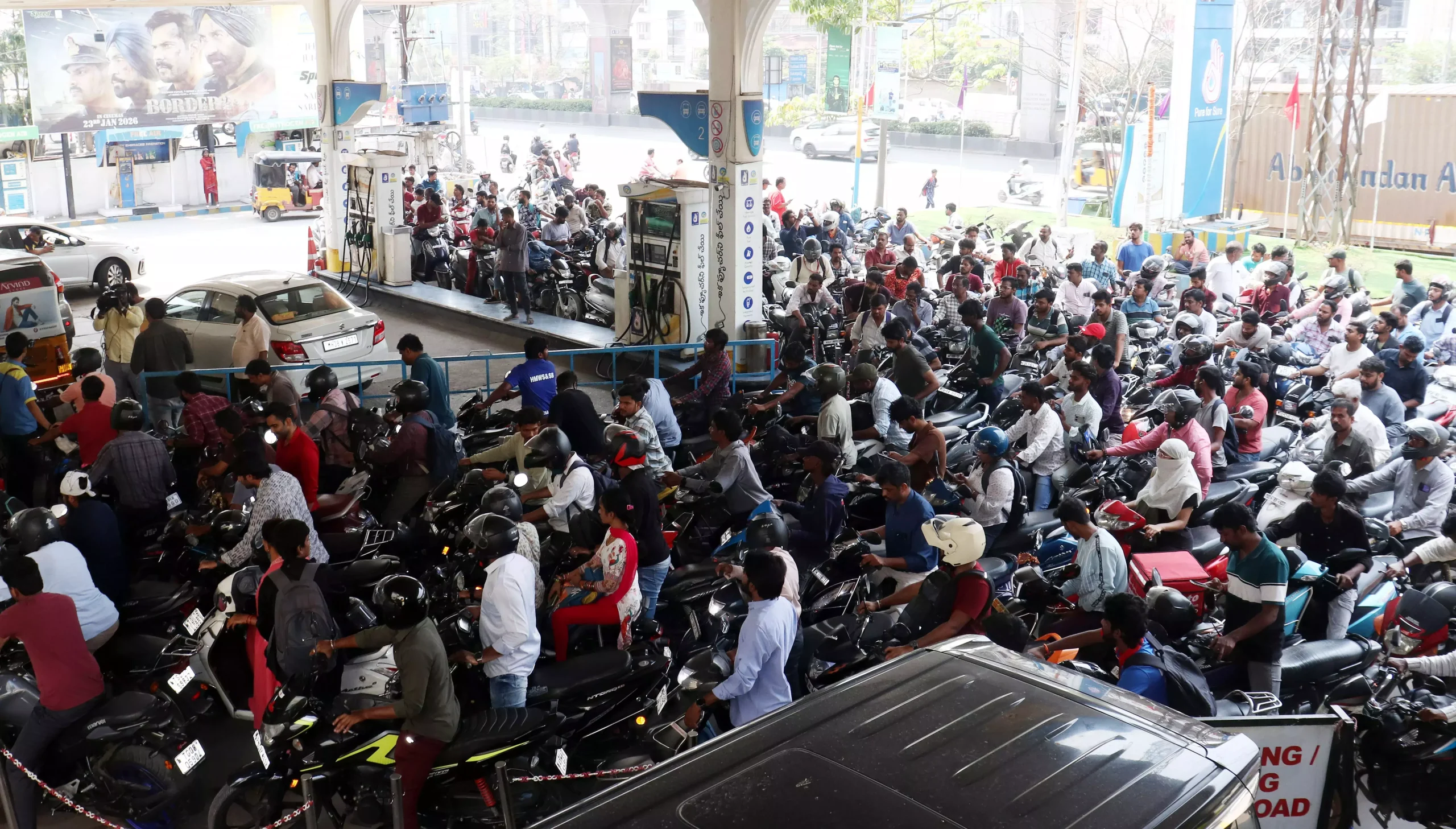 હૈદરાબાદ: હૈદરાબાદમાં પેટ્રોલ, બુધવારે સવારે, ડીઝલ અને સીએનજી સ્ટેશનો પર ગભરાટની ખરીદીનો દિવસ, કેબ ડ્રાઇવરો, ઓટોરિક્ષા ડ્રાઇવરો, ગીગ કામદારો અને મુસાફરો કલાકો સુધી લાંબી કતારોમાં રાહ જોતા હતા, જેના કારણે સવારી અવરોધો અને ભાડામાં વધારો થયો હતો.