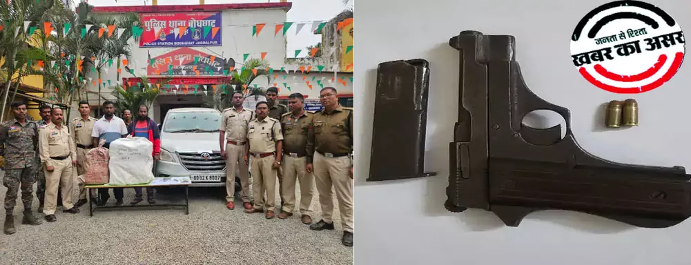 જગદલપુર. જગદલપુર ઓડિશાથી ગાંજાના મોટા કન્સાઈનમેન્ટ લઈને આવી રહ્યું છે સપ્લાય કરવા આવતી આંતરરાજ્ય ગેંગના 2 સભ્યોની પોલીસે ધરપકડ કરી હતી કર્યું છે. તસ્કરોના કબજામાંથી 42.431 કિલો ગાંજા મળી આવ્યો છે, જેની કિંમત અંદાજે 21.21 લાખ રૂપિયા છે. તેમજ દેશી બનાવટની પિસ્તોલ, બે જીવતા કારતુસ અને ઈનોવા કબજે કરવામાં આવી છે. મામલો બોધઘાટ પોલીસ સ્ટેશન વિસ્તારનો છે. માહિતી અનુસાર, 23 ફેબ્રુઆરીની રાત્રે, પોલીસને એક બાતમીદાર પાસેથી માહિતી મળી હતી કે ઓડિશાથી સિલ્વર રંગની ઇનોવા (OD02K8007)માં બે વ્યક્તિઓ ગેરકાયદે ગાંજા લઈને જગદલપુર તરફ આવી રહ્યા છે.