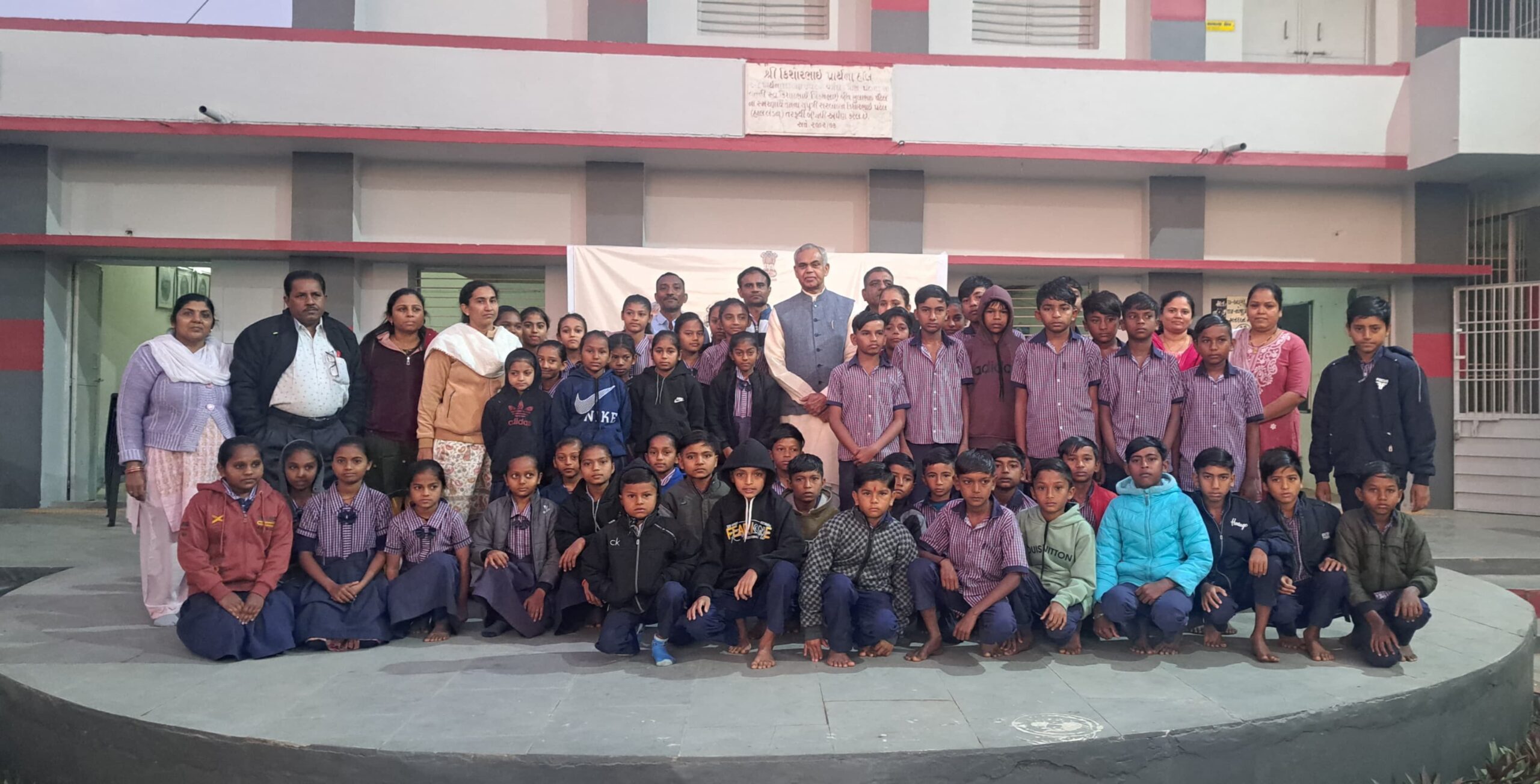 સવારે શાળાના વિદ્યાર્થીઓ સાથે સંવાદ કરી ઉજ્જવળ ભવિષ્ય માટે શુભકામનાઓ પાઠવતા રાજ્યપાલશ્રી