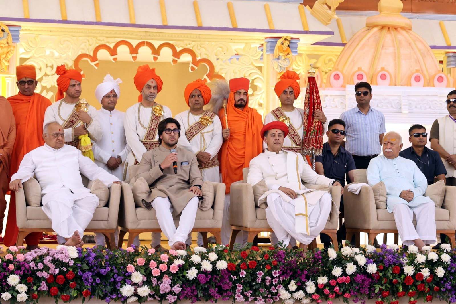 રાષ્ટ્રીય સ્વયંસેવક સંઘ (RSS) સર સંઘચાલકશ્રી મોહન ભાગવતજીએ આ પ્રસંગે હરી-ભક્તોને સંબોધતા હળવી શૈલીમાં કહ્યું હતું કે એક સીનીયરને મળીને જુનીયરને જે ખુશી થાય એવી ખુશી મને થઇ રહી છે.