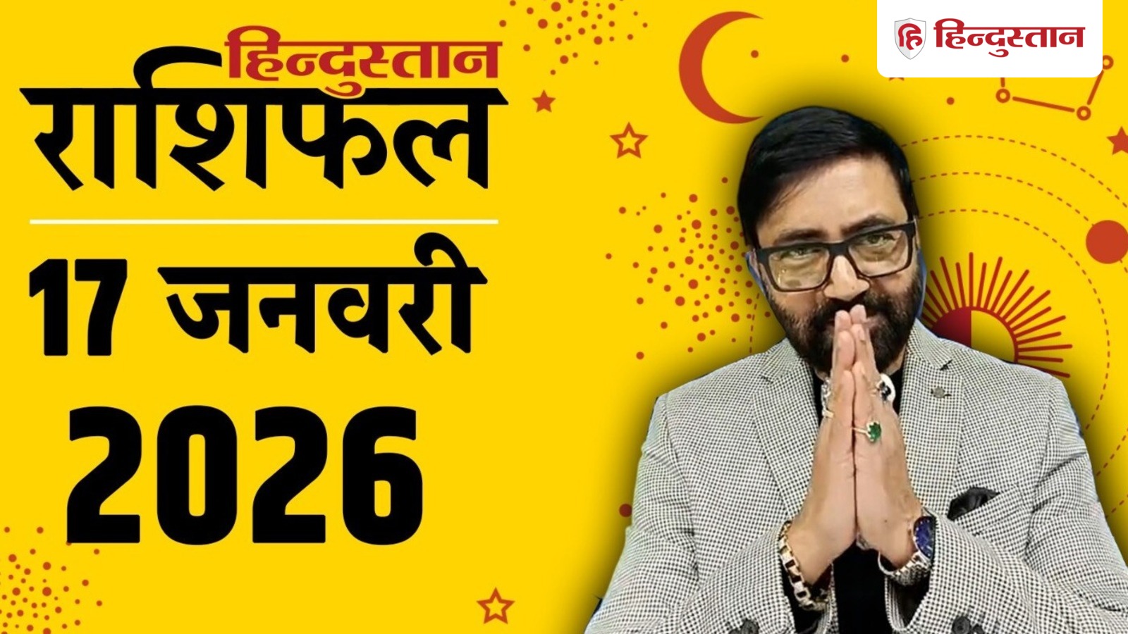 આજનું જન્માક્ષર 17 જાન્યુઆરી 2026: ગ્રહોની સ્થિતિ- મિથુન રાશિમાં ગુરુ. સિંહ રાશિમાં કેતુ. ધનુરાશિમાં બુધ અને ચંદ્ર. મકર રાશિમાં સૂર્ય, શુક્ર, મંગળ. રાહુ કુંભ રાશિમાં છે અને શનિ મીન રાશિમાં છે.