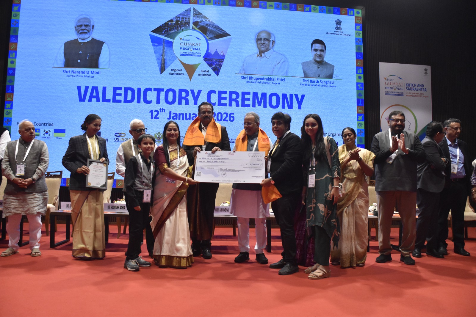 રાજકોટ, તા. ૧૨ જાન્યુઆરી – રાજકોટમાં મારવાડી યુનિવર્સિટી ખાતે આયોજીત બે દિવસીય ‘વાઇબ્રન્ટ ગુજરાત રિજનલ કોન્ફરન્સ – કચ્છ અને સૌરાષ્ટ્ર’નું આજે સમાપન થયું. આ કોન્ફરન્સ દરમિયાન રૂપિયા ૫.૭૮ લાખ કરોડના રોકાણના ૫૪૯૨ સમજૂતિ કરાર થયા હોવાની જાહેરાત કેબિનેટ મંત્રી શ્રી જીતુભાઈ વાઘાણીએ કરી હતી.