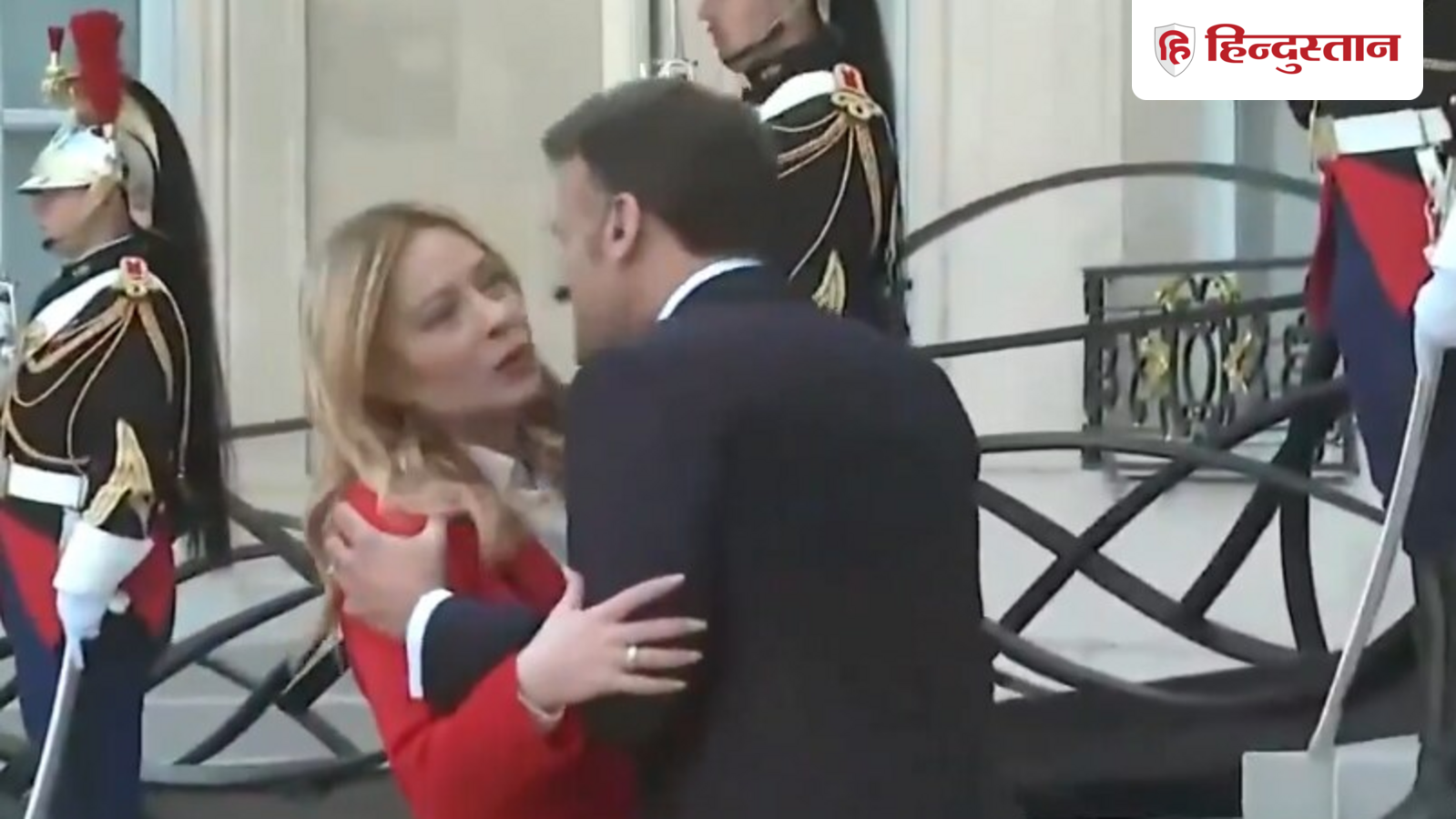 મેક્રોને ફ્રાન્સની રાજધાની પેરિસના એલિસી પેલેસમાં હોર્મુઝની સુરક્ષા અંગે ચર્ચા કરવા માટે એક બેઠક બોલાવી હતી. તેમાં ભાગ લેવા ઈટાલીના વડાપ્રધાન મેલોની પણ પહોંચ્યા હતા. જોકે, મેલોનીનું આગમન ત્યારે ચર્ચાનો વિષય બની ગયું હતું જ્યારે ગેટ પર તેનું સ્વાગત કરવા પહોંચેલા મેક્રોને તેને ગળે લગાડ્યો હતો અને તેને કિસ કરતો જોવા મળ્યો હતો. મેલોની પણ આ રીતે ગળે મળવાથી થોડી અસ્વસ્થ દેખાતી હતી. રાજ્યના બે વડાઓએ આ રીતે ગળે લગાવ્યાની ક્ષણ ટૂંક સમયમાં મીડિયા અને સોશિયલ મીડિયામાં હેડલાઇન બની હતી.