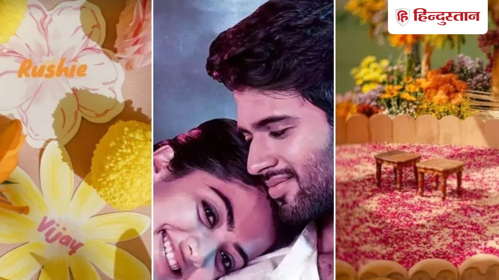 હવે રશ્મિકા અને વિજયે સોશિયલ મીડિયા પર હલ્દી સેરેમનીની તસવીરો શેર કરી છે. વિજયે ઈન્સ્ટાગ્રામ સ્ટોરી પર 2 ફોટો શેર કર્યા છે. એક ફોટોમાં હળદરની સજાવટ દેખાઈ રહી છે, જેમાં એકમાં રૂષિ અને બીજામાં વિજય લખેલું છે. બીજા ફોટામાં, એક મોટા ટબમાં બે ખુરશીઓ મૂકવામાં આવી છે અને તે ગુલાબથી ભરેલી છે. બાજુમાં ફૂલોની ટોપલી રાખવામાં આવી છે.