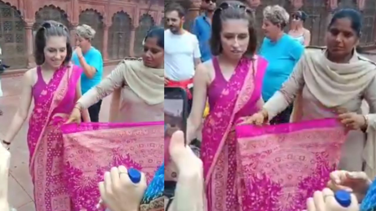 આગ્રા સમાચાર: આગ્રામાં તાજમહેલ, જે તેની સુંદરતા અને મહત્વ માટે સમગ્ર વિશ્વમાં પ્રખ્યાત છે, ફરી એકવાર ભારતીય આતિથ્યનું શ્રેષ્ઠ ઉદાહરણ આપી રહ્યું છે. રવિવારે બપોરે, તાજમહેલના પશ્ચિમ દરવાજા પર હૃદયની સ્પર્શતી ઘટના બની હતી, જ્યારે ઇટાલીના વિદેશી પ્રવાસીઓના જૂથની કેટલીક મહિલાઓ ભારતીય સંસ્કૃતિને અનુભવવા માટે તાજ મહેલને સાડી પહેરેલી જોવા મળી હતી. પરંતુ, તે તાજમહેલના પ્રવેશદ્વાર પર પહોંચતાંની સાથે જ તેની સાડીઓ ખોલવા લાગી અને તેઓ અસ્વસ્થતા અનુભવવા લાગ્યા.