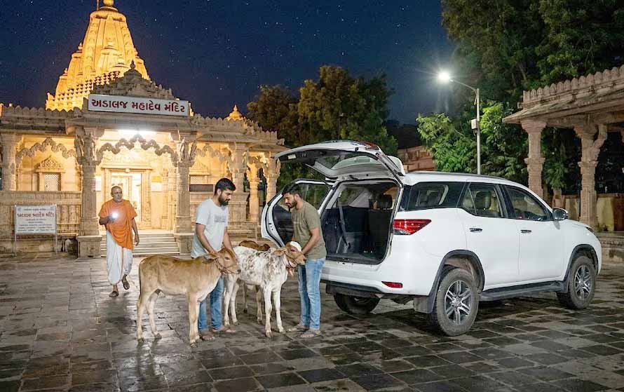 અડાલજ પાસેના શનિદેવ મંદિર સામે મધરાતે લકઝુરિયસ કારમાં પશુ ચોરી જતી ગેંગ આવી હતી અને વાછરડાની ચોરી કરી ફરાર થઈ ગઈ હતી તેના દ્રશ્યો સીસીટીવીમાં કેદ થયા છે. અડાલજમાં મંદિરની સામે રાત્રે એક સફેદ કલરની લકઝુરિયસ કારમાં આવેલા તસ્કરોએ વારછાડાઓને ગાડીમાં ભરવાનું શરૂ કર્યું હતું જેના લીધે પશુઓ ભાંભરવા લાગ્યા હતા. પશુ ભાંભરતા હોવાનો અવાજ આવતા મંદિરના પૂજારી જાગી ગયા હતા.